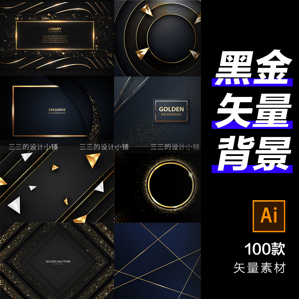 黑金科技抽象奢华黑色金色派对海报活动背景板ai矢量设计素材模板热门设计联盟服务商