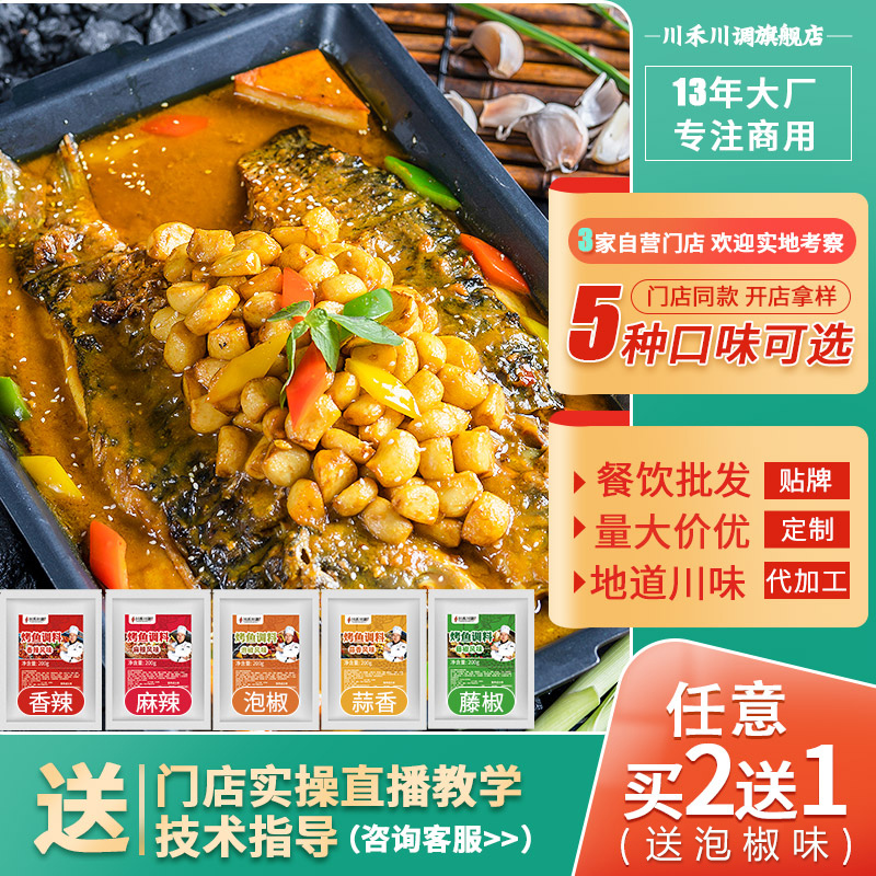 烤鱼调料商用200g香辣麻辣藤椒泡椒蒜香纸包鱼调料餐饮烤鱼料家用热门设计联盟服务商