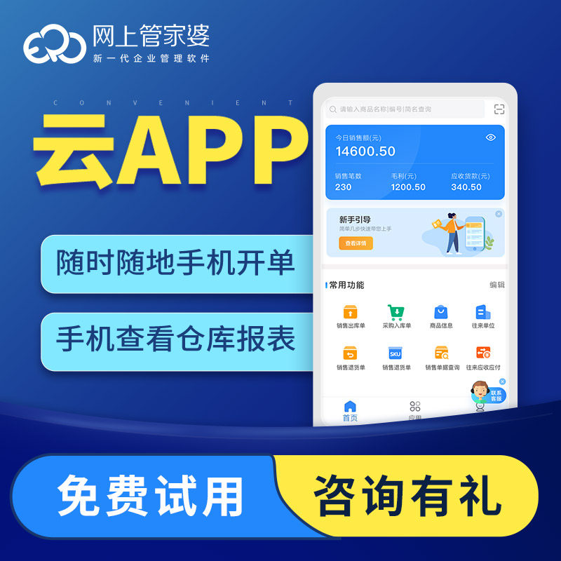 管家婆进销存管理软件手机版APP销售开单做账仓库出入库管理系统热门设计联盟服务商