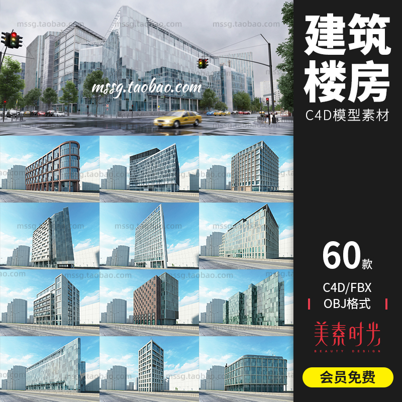 60款城市建筑办公写字楼房子大厦C4D模型3D设计素材OBJ格式全新热门设计联盟服务商