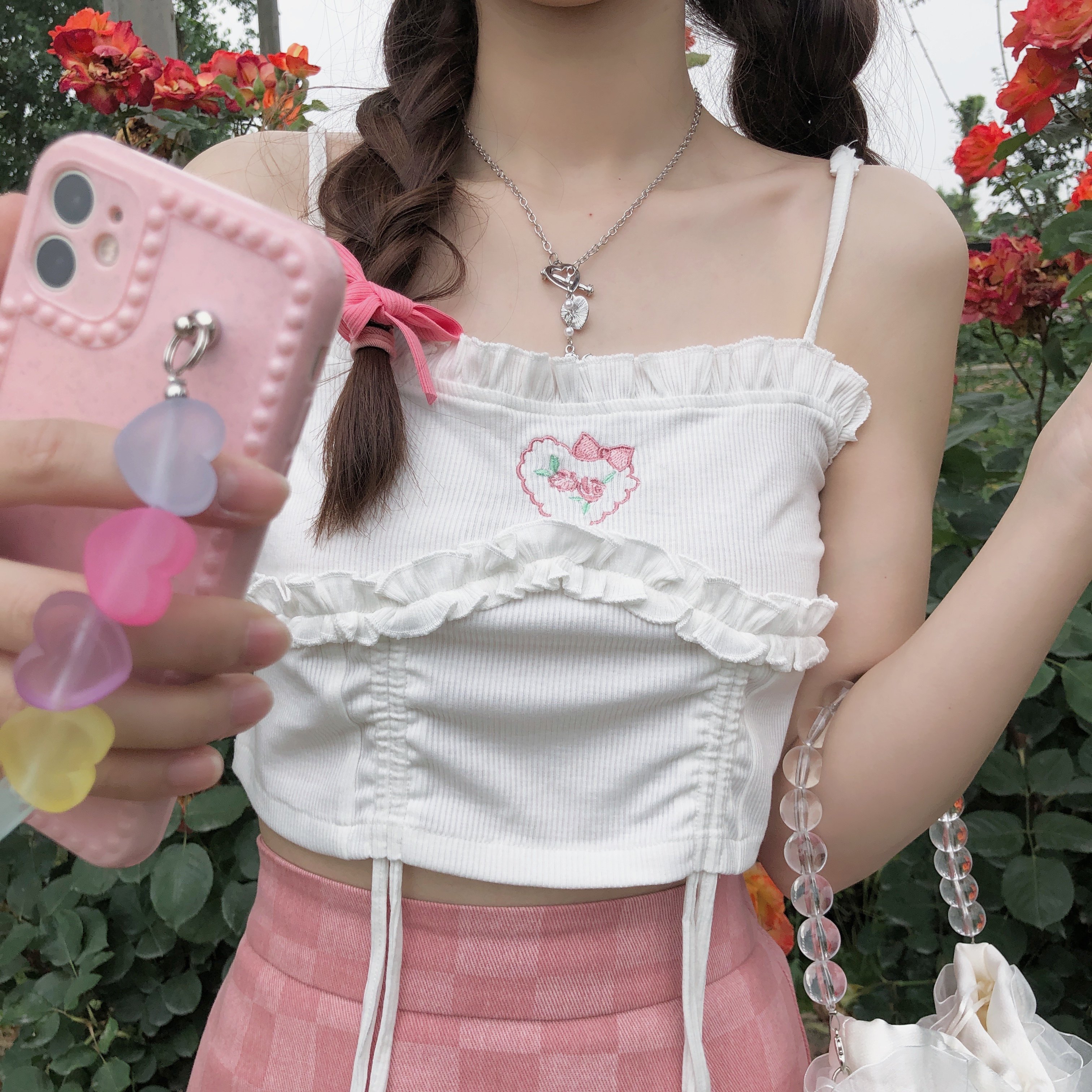 酸奶了设计白色奶甜小吊带背心女外穿夏辣妹纯欲风外搭甜辣短上衣热门设计联盟服务商