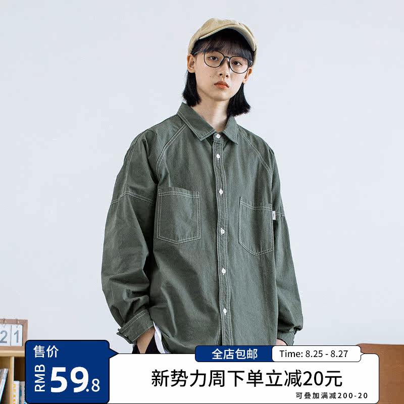 清水町 SMZD 2021秋季新款日系复古工装长袖衬衫宽松纯色中性衬衣热门设计联盟服务商